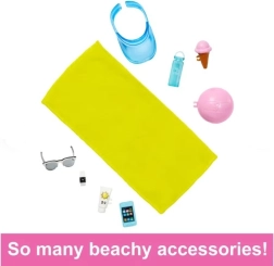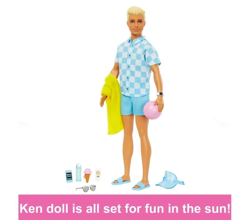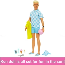 Ken is de perfecte metgezel voor strandavonturen – van relaxen op de handdoek tot spelen met de strandbal. Accessoires zoals een visor, zonnebril of zonnebrandcrème stimuleren fantasierijk spel en de ontwikkeling van sociale vaardigheden.