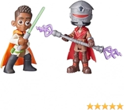 Betreed een sterrenstelsel vol plezier met de Star Wars Pop‑Up Duel set. Twee gedetailleerde figuren van 10 cm brengen kinderen authentieke avonturen uit de serie Young Jedi Adventures op Disney+. Met één druk op de knop op de riem schiet het lichtzwaard van één van de personages bliksemsnel omhoog – en na het gevecht duw je het eenvoudig weer terug.