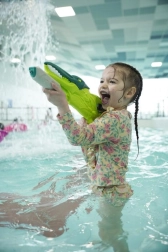 Waterpistool in de vorm van een dinosaurus met een waterreservoir. Het pistool is 40 cm groot.