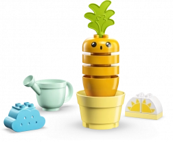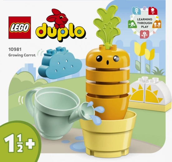 LEGO DUPLO Groeiende wortel (10981) is een geweldige educatieve speelgoedset voor kinderen vanaf 18 maanden. Met deze set leren kinderen over een milieubewuste levensstijl en het kweken van planten, terwijl ze hun bouwvaardigheden verbeteren. De set bevat vier stukjes wortel, inclusief loof, een bloempot, een gieter en elementen die zon en een regenwolk voorstellen. Kinderen kunnen het weer kiezen en beslissen wanneer ze de plant water geven, waardoor ze de plant de nodige zorg geven en de groei stimuleren.