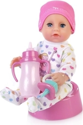 Deze kleine pop met een zachte uitstraling en een vriendelijk gezichtje geeft kinderen een realistische ervaring van het zorgen voor een baby. Vul het flesje met water, laat het babytje drinken en daarna gaat ze echt “op het potje”. Bij het in slaap brengen sluit de pop haar ogen, wat natuurlijke speelrituelen en ontspanning bevordert.