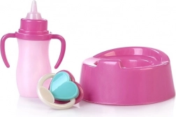 Het flesje en het potje ondersteunen realistisch spel en de ontwikkeling van fijne motoriek en sociale vaardigheden tijdens de zorg voor de pop.