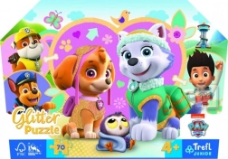 De schattige puzzel met de heldinnen SKYE en EVEREST zal alle kleine PAW PATROL-fans verrukken. Dankzij de fijne gouden glitters schitteren zowel de stukjes als de verpakking en wordt puzzelen nog leuker. De puzzel is afgestemd op kinderen en stimuleert fijne motoriek, logisch denken en verbeeldingskracht.