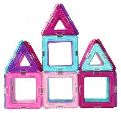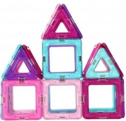 De pastel-editie van de populaire bouwset bevat 18 vierkanten en 12 driehoeken in halftransparante kleuren (roze, paars, turquoise, blauw). De onderdelen verbinden via betrouwbare magneten langs de randen, zodat kinderen eenvoudig sterren, huisjes, harten en torentjes maken. Ideaal voor de eerste constructieproberen en de ontwikkeling van ruimtelijk inzicht.