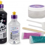 Ontdek de ruimtepret met Doe-Het-Zelf Slijm Galaxy XL, dat ieder kind zal betoveren met zijn uniekheid. Kijk hoe zwarte slijm verandert in een kosmische massa met miljoenen glinsterende stukjes.