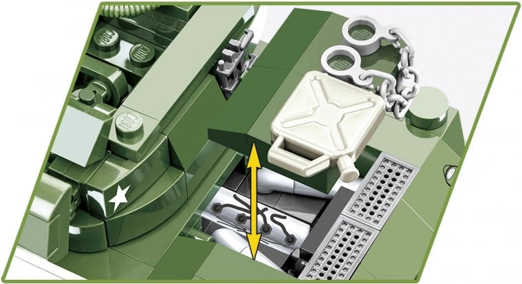 Dankzij 525 zorgvuldig vervaardigde onderdelen geniet je van een doordachte bouw en het tentoonstellen van het voltooide model. Met draaibare koepel, elevatie van het kanon, toegang tot de motor en een naamplaatje. In de doos vind je ook een minifiguur van een Amerikaanse officier (kapitein). Alles is gemaakt in de EU, compatibel met andere bouwsystemen en veilig voor kinderen.