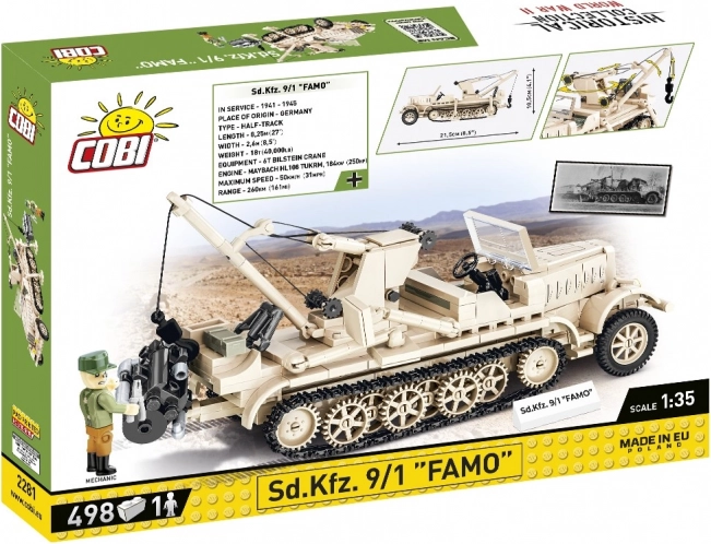 De Sd.Kfz. 9/1 “FAMO” was de grootste Duitse halftracktrekker van de Tweede Wereldoorlog. Oorspronkelijk bedoeld als zware artillerietrekker, werd hij vooral bekend in reparatie-eenheden bij het evacueren en bergen van gepantserde voertuigen. De variant 9/1 was uitgerust met een zestons Bildstein-kraan, aangedreven door de Maybach HL 108-motor, ook bekend uit vroege versies van de Pz.Kpfw. III en IV.