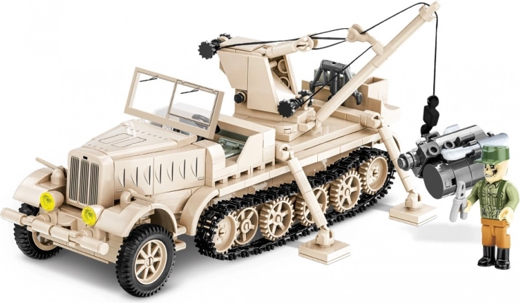 Bouw de iconische Duitse halftracktrekker Sd.Kfz. 9/1 Famo op schaal 1:35 uit 498 onderdelen. Het model biedt functionerende rupsbanden, een draaibare kraan met beweegbare giek, hefsteunen, zitplaatsen voor minifiguren en hoogwaardige duurzame prints zonder stickers. Een geweldige aanvulling voor diorama’s en liefhebbers van historische techniek.
