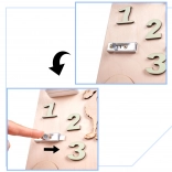 Dankzij het unieke dubbelzijdige ontwerp kunnen kinderen zowel de manipulatieve zijde als de schrijf- en tekenzijde gebruiken.