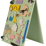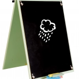 Aan de andere kant van het bord bevindt zich een krijtoppervlak om op te tekenen. De verpakking bevat krijt en een spons. Het bord is gemaakt van hoogwaardig hout, wat het een ecologisch alternatief maakt voor plastic speelgoed en biedt een hogere duurzaamheid.