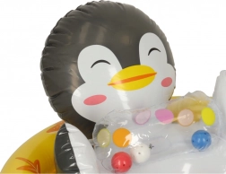 De opblaasbare stoel met pinguïn‑motief lokt kinderen het water in en helpt hen op een veilige en comfortabele manier aan de wateromgeving te wennen. De enkamerconstructie zorgt voor snel opblazen en het lekdichte ventiel houdt de lucht vast gedurende de hele speeltijd. Hoogwaardig PVC garandeert dat de hulp jarenlang meegaat.