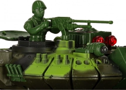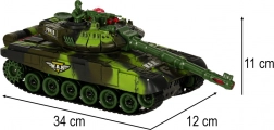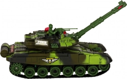 Het model biedt rijke effecten: voorste LED-koplampen, opvallende koepelverlichting en authentieke geluiden van motor, kanonschot en mitrailleur. Dankzij de zachte rubberen rupsbanden kan hij over verschillende ondergronden en blijft hij uitstekend op koers. Een te openen luik in de koepel maakt het mogelijk de meegeleverde tankcommandant met mitrailleur te plaatsen. De oplaadbare accu verzorgt de voeding, voor voordelig en comfortabel gebruik.
