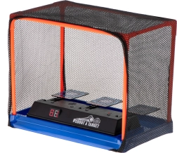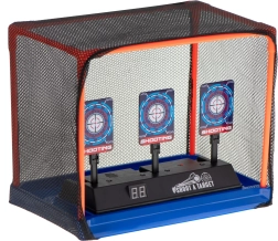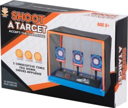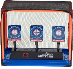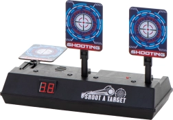 Het elektronische schietdoel is een geweldige speelset voor kinderen en volwassenen die nauwkeurigheid en oog-handcoördinatie willen trainen. Na een treffer klappen de targets neer; na het omschieten van alle drie gaan ze automatisch omhoog en wordt er een punt bijgeschreven op het LED-display. Geschikt voor foam pijltjes en balletjes.