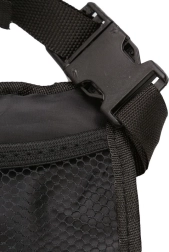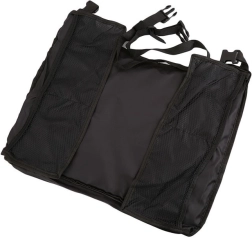 Vier meshvakken voor accessoires en verstelbare riemen met gespen voor snelle bevestiging aan autostoel of kinderwagen.