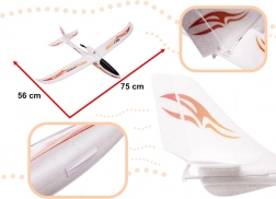 spanwijdte: 750 mm Model lengte: 565 mm Gewicht zonder accu: 100 g Geschatte vliegtijd: tot 15 min. Niveau: voor beginnende modelvliegers Frequentie: 2,4 GHz Materiaal: EPO Bereik: tot 200 meter Accu: LiPo 7,4 V 300 mAh Laadtijd: 30-40 minuten Batterijen zender: (niet inbegrepen)