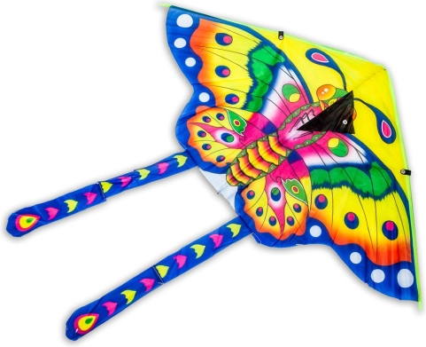 Geniet van plezier in de buitenlucht met deze vlindervormige vlieger met een breedte van 90 cm. Dankzij de lichte constructie en het duurzame nylon stijgt hij gemakkelijk op, zelfs bij een lichte bries, biedt hij een stabiele vlucht en is hij makkelijk te besturen. Inclusief een stevig nylontouw met handgreep voor comfortabel sturen.