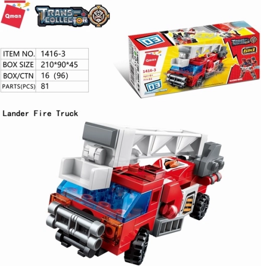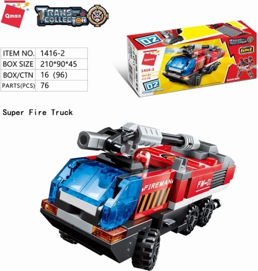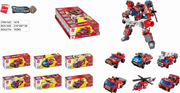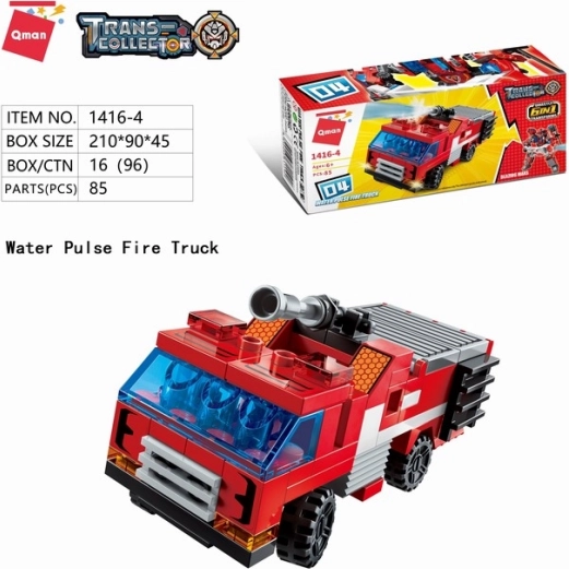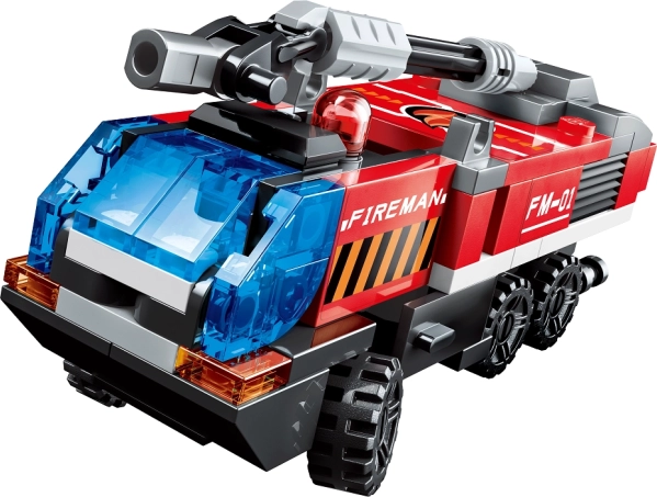 - Variatie en ombouw: afzonderlijke modellen van brandweertechniek (auto, helikopter e.d.) én te combineren tot een grote mech.