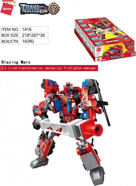 Ontdek de Qman Blazing Mars-serie – afzonderlijke mini-bouwsets voor brandweertechniek die onderling te combineren zijn. Na het completeren van de hele serie bouw je een grote, samenhangende brandweermech. Dankzij kleurrijke steentjes en slimme bouwoplossingen genieten kinderen van uren creatief spel en training van de fijne motoriek.