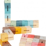 Het hout is geverfd in trendy pasteltinten, wat het speelgoed een moderne uitstraling geeft.