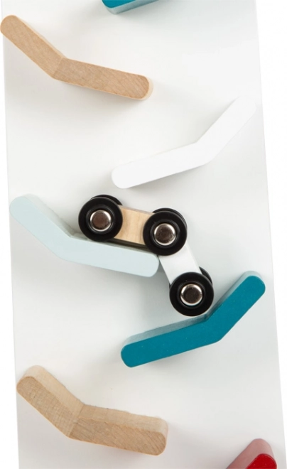 De houten cascadebaan is het ideale speelgoed voor de ontwikkeling van de creativiteit en motoriek van kinderen. Zodra je de kleurrijke autootjes vanaf de top loslaat, beginnen ze ratelend naar beneden te rollen over de baan, wat voor veel plezier en opwinding zorgt. De moderne combinatie van kleuren met wit en natuurlijk hout maakt van deze set ook een esthetisch aantrekkelijke decoratie voor elke kinderkamer.