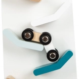 De combinatie van moderne kleuren met wit en natuurlijk hout maakt van dit speelgoed ook een geweldig decoratief element.