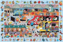 Na het leggen van de scène van het drukke station trainen kinderen hun speur- en opmerkingsvermogen door meer dan 40 voorwerpen te zoeken in het kader rond de afbeelding.