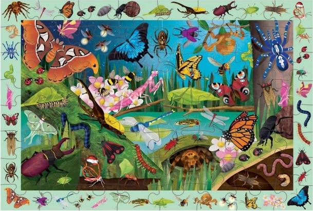 Ontdek een speelse puzzel voor kinderen vanaf 4 jaar: een 64-delige puzzel met een insectenthema die de observatievaardigheden, geduld en fijne motoriek ontwikkelt. Na het leggen zoeken kinderen meer dan 40 verborgen kevers en vlinders in de rand – dubbele pret! Gemaakt van gerecycled papier met hoogwaardige bedrukking en een matte afwerking voor prachtige kleuren.