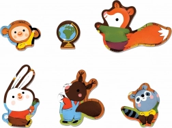 De vloerpuzzel Boskleuters is een ideale keuze voor de ontwikkeling van de fijne motoriek en het logisch denken bij kinderen. De set bevat 6 gevormde stukjes met motieven van schattige bosdieren zoals eekhoorn, konijn en vos. De grote stukken passen perfect in kleine kinderhanden.
