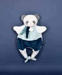 Panda Doudou met omvormbare tas, die kinderen van alle leeftijden kalmeert en de verbeelding stimuleert. Ook ideaal als cadeau voor de allerkleinsten.