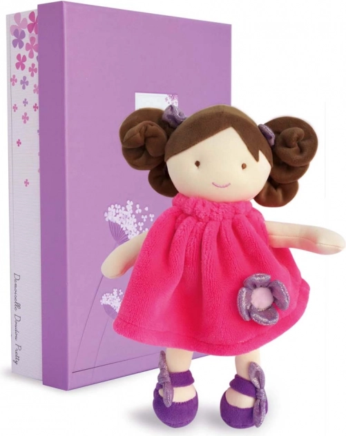 Met een hoogte van 28 cm is deze pop ideaal voor kleine kinderen vanaf de geboorte. Ze is gemaakt van hoogwaardige materialen die veiligheid en comfort garanderen. Het kind kan haar neerzetten en spelen met haar donkerbruine, krullende lokken, die ontworpen zijn om te stylen.