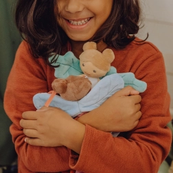 De zachte uitvoering met geborduurd gezicht zonder kleine onderdelen garandeert veilig knuffelen vanaf de geboorte.