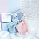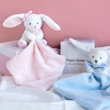 Dit schattige konijntje in een elegante geschenkdoos is een must-have voor elke pasgeboren baby. In wit met roze knuffeldoek is het konijntje uiterst zacht en wordt snel de beste metgezel voor je kind. Het kleine doekje aan de poot dient als een gemakkelijk vast te pakken knuffeldoek.
