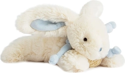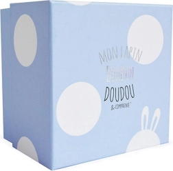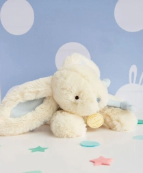 Dit crèmekleurige pluchen konijntje met blauwe oortjes wordt geleverd in een prachtige cadeaudoos die moderniteit en luxe uitstraalt. Het is niet alleen aangenaam om aan te raken, maar voldoet ook aan de Europese CE-normen. Ideaal als cadeau voor pasgeborenen.