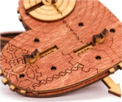 Precisiegravure, tandwielelementen en een gelaagde constructie maken van de puzzel zowel een stijlvol accessoire als een duurzame cadeauverpakking.