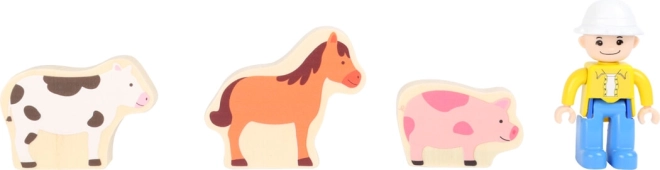 Deze houten boerderij SMALL FOOT is een ideale speelset voor kinderen vanaf 3 jaar. Hij biedt realistische speelelementen – een schuur met dubbele deuren, een werkende kraan om hooi op de bovenverdieping op te slaan en magnetische balen die gemakkelijk kunnen worden opgetild en vervoerd met de meegeleverde tractor met aanhanger. De set bevat ook een paard, koe, biggetje en zes delen afrastering.