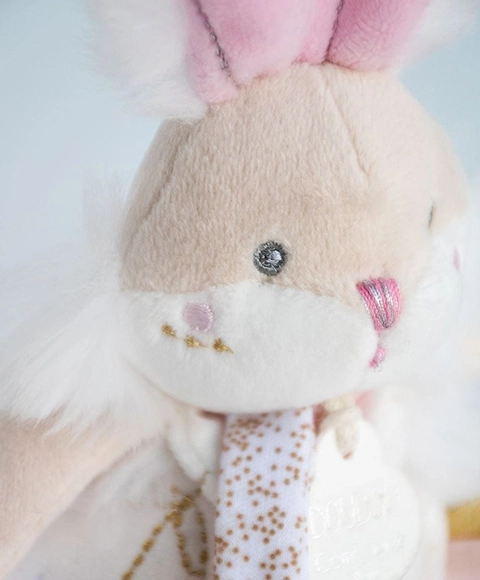 Dit zachte konijntje combineert drie functies in één: een knuffeldoekje, een zachte rammelaar voor de ontwikkeling van het gehoor en een fopspeenhouder zodat de fopspeen altijd bij de hand is. De premium, zachte pluche garandeert een aangename aanraking en veilig knuffelen vanaf de eerste levensdagen.