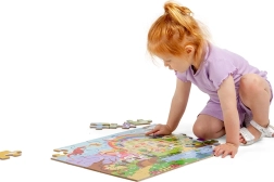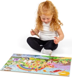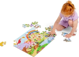 De Bigjigs Toys vloerpuzzel Fantasiewereld biedt kinderen een speelse toegang tot een rijk vol magie en bovennatuurlijke wezens. Grote, makkelijk vast te pakken stukken van stevig hout maken het leggen eenvoudig, ontwikkelen de oog-handcoördinatie en leren kleuren en vormen herkennen. Ideaal als eerste grote puzzel voor kleine ontdekkers.