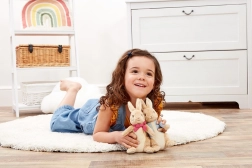 De vriendelijke uitstraling, lange oortjes en opvallende strik maken van Flopsy een betoverende metgezel om mee te spelen en mee in slaap te vallen.