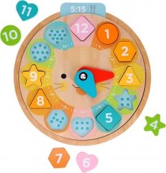 Bevat beweegbare wijzers en vormen die kinderen op de juiste plaats kunnen zetten, wat hand-oogcoördinatie en fijne motoriek stimuleert.