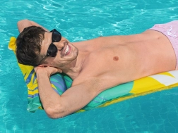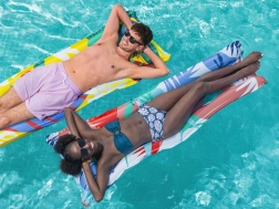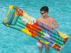 Het luchtbed met levendig tropisch design brengt kleur en sfeer in elke water- en zonnesessie.
