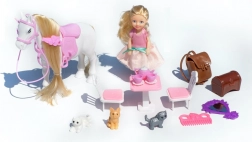 Deze betoverende speelset combineert favoriete elementen – een pop, een paardje en kittens – samen met praktisch meubilair en accessoires. Kinderen kunnen hun eigen verhaaltjes maken, voor de diertjes zorgen en een picknick of theekransje organiseren aan het tafeltje.