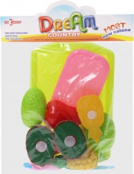 Deze fruitsnijset is ideaal voor kinderen die graag volwassenen in de keuken nadoen. De onderdelen zijn afgestemd op kinderhanden en het veilige "mes" laat je afzonderlijke stukjes fruit snijden die met klittenband of pinnetjes aan elkaar zitten. Het kind beleeft realistisch speelplezier terwijl ouders gerust kunnen zijn.