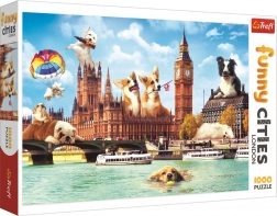 De puzzel bevat een collage van afbeeldingen van verschillende hondenrassen in het herkenbare decor van Londen.</li>
