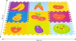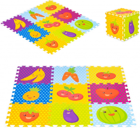 De IPLAY schuimen speelmat is ontworpen met het oog op de veiligheid en het comfort van kinderen. De mat bevat diverse kartonnen afbeeldingen van fruit en groenten die niet alleen decoreren, maar ook educatief zijn. De mat is geschikt om op te spelen en om te leren lopen.