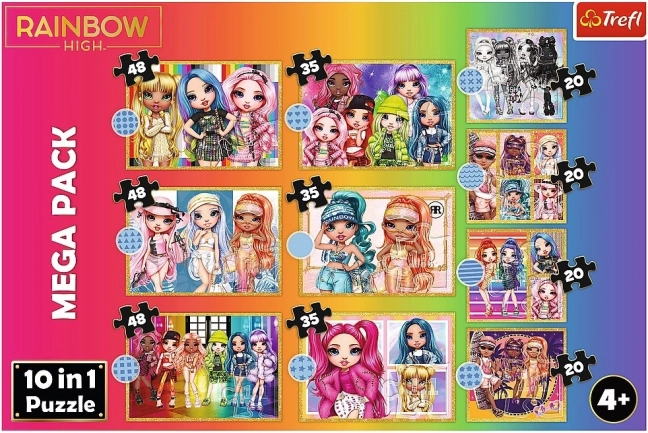 Geniet van uren plezier met de Mega Pack kinderspellen met puzzels met het thema Rainbow High van het merk Trefl. De verpakking biedt 10 verschillende puzzels in meerdere moeilijkheidsgraden voor geleidelijk leren en spelen. Dankzij de verschillende prints op de achterkant van de stukjes is het onderscheiden van de afzonderlijke afbeeldingen snel en eenvoudig.