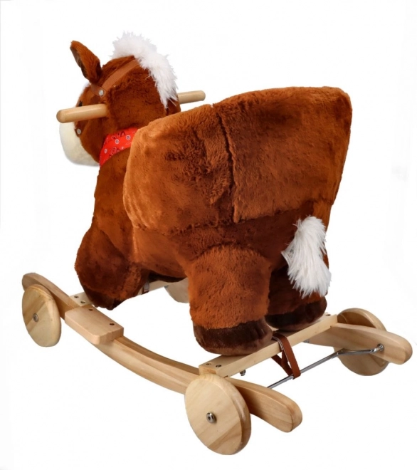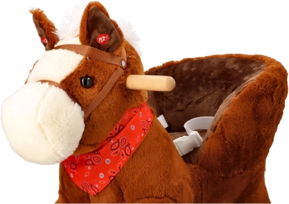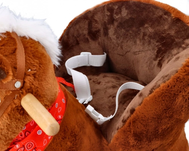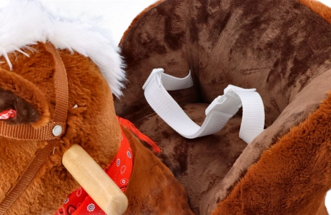 Ontworpen met nadruk op veiligheid en comfort, beschikt het over een zachte zitting met een diepte van circa 20 x 14 cm, waardoor comfortabel zitten tijdens het schommelen mogelijk is. Versierd met een witte manen en een rode sjaal brengt dit paard niet alleen plezier, maar ook stijl.