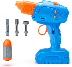 Een veilige kunststof boormachine met verwisselbare bits zorgt voor realistisch spel en traint de fijne motoriek.