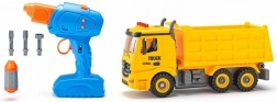 De set bevat kunststof voertuigonderdelen en wielen voor eigen montage. Kinderen zetten het voertuig in elkaar en kunnen direct naar de bouwplaats vertrekken.