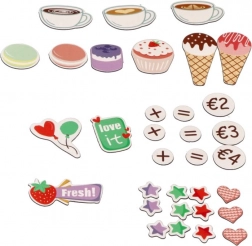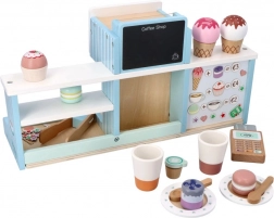 Deze houten ijssalon en koffiebar biedt kinderen een authentieke ervaring van het runnen van een klein bistro. Dankzij de kleurrijke accessoires, draaiknoppen en realistische elementen van de koffiemachine en de ijskraam oefenen kinderen hun fijne motoriek, communicatie en verbeeldingskracht.