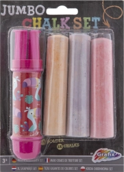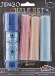 Ontdek het plezier van tekenen op de stoep, de binnenplaats of het schoolplein. Extra dikke jumbo krijtjes liggen goed in de hand en breken minder snel; de houder houdt bovendien je handen schoon en maakt het gebruik makkelijker, ook voor jongere kinderen. De verpakking bevat 3 krijtjes in verschillende kleuren die een duidelijke en gelijkmatige lijn achterlaten.